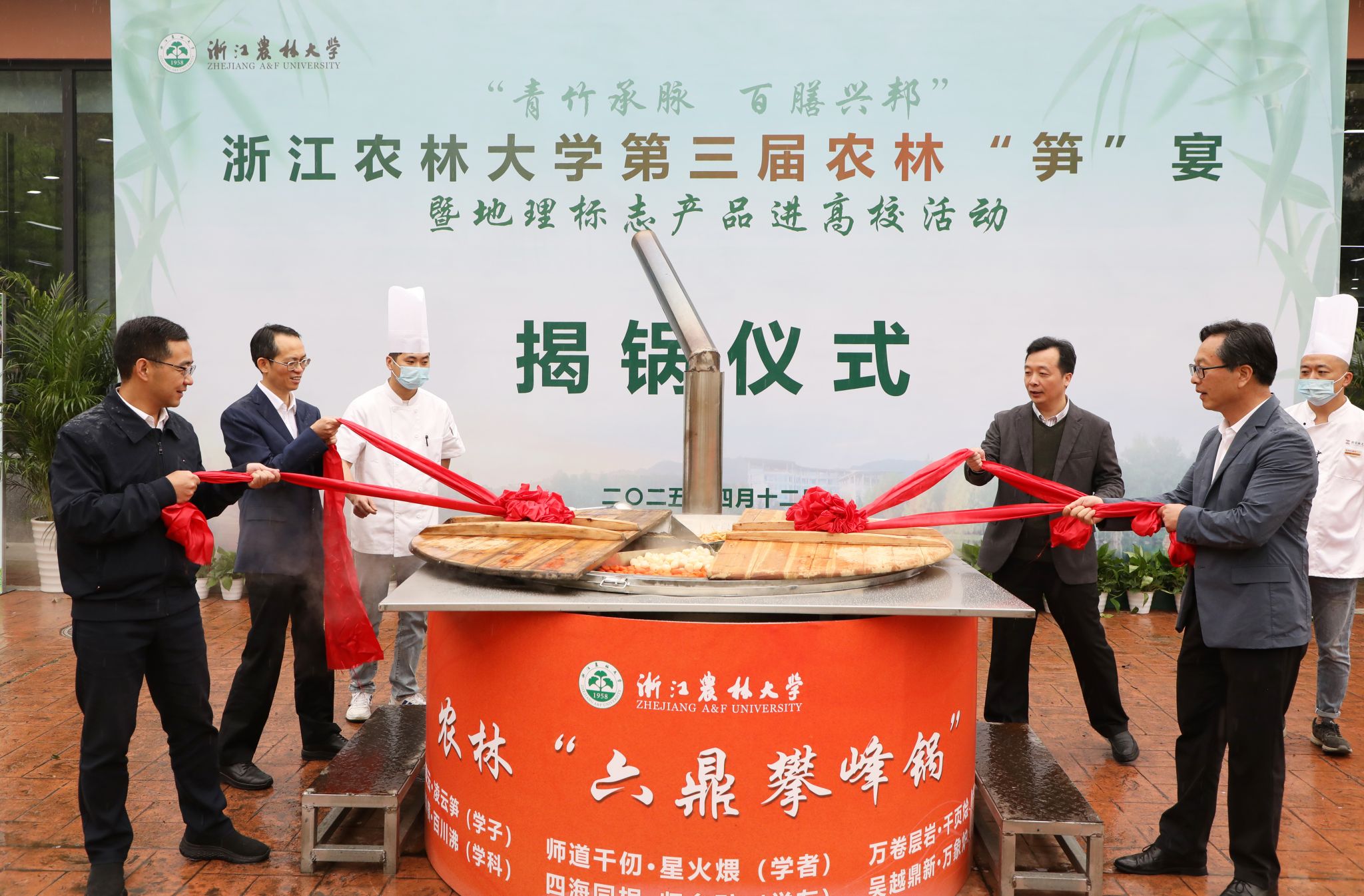 楊圓華、倪建均、林敏、胡廖明共同為農林“六鼎攀峰鍋”揭鍋。