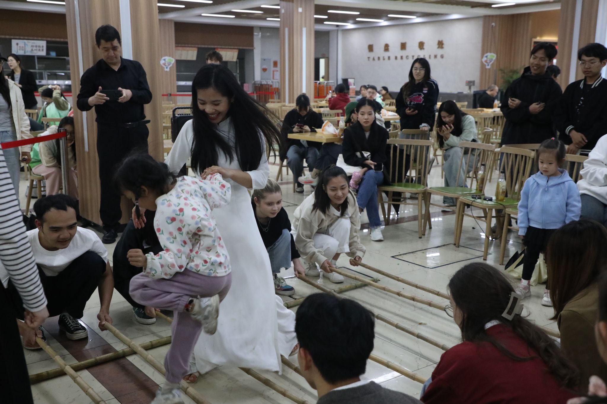 竹竿舞由我校越南籍留學生領舞,師生們在竹竿開合間靈活跳躍;剝筍比賽中選手們動作麻利,削、繞、切,勢必拿下冠軍;“巧手捏面”活動邀請師生現場制作“百縣千碗”特色點心,感受勞動樂趣;臨安非遺傳承人現場展示編織手藝,展現指尖上的匠心傳承……參加活動的師生品筍香、觀竹韻、享竹趣,現場熱鬧非凡。