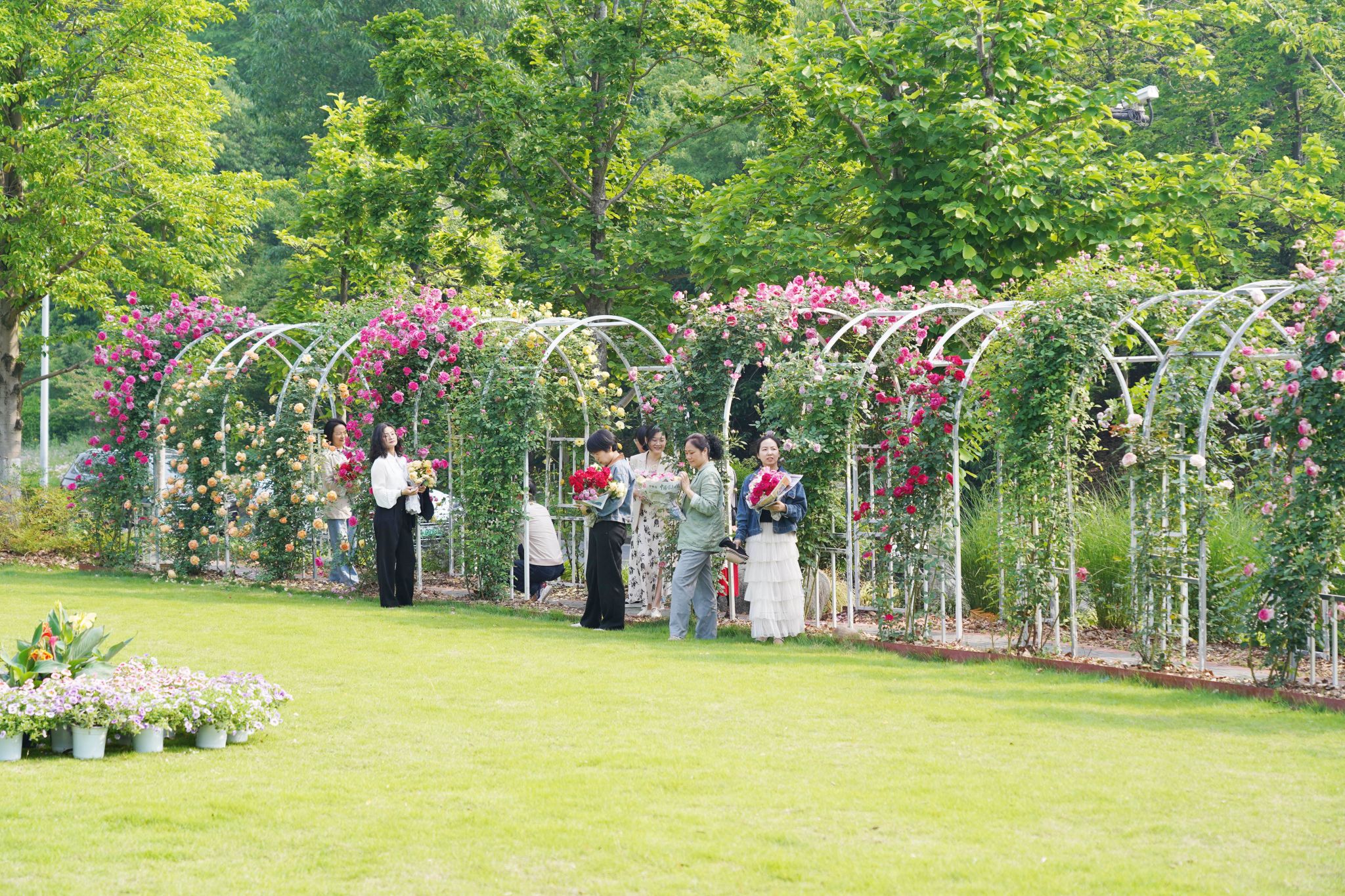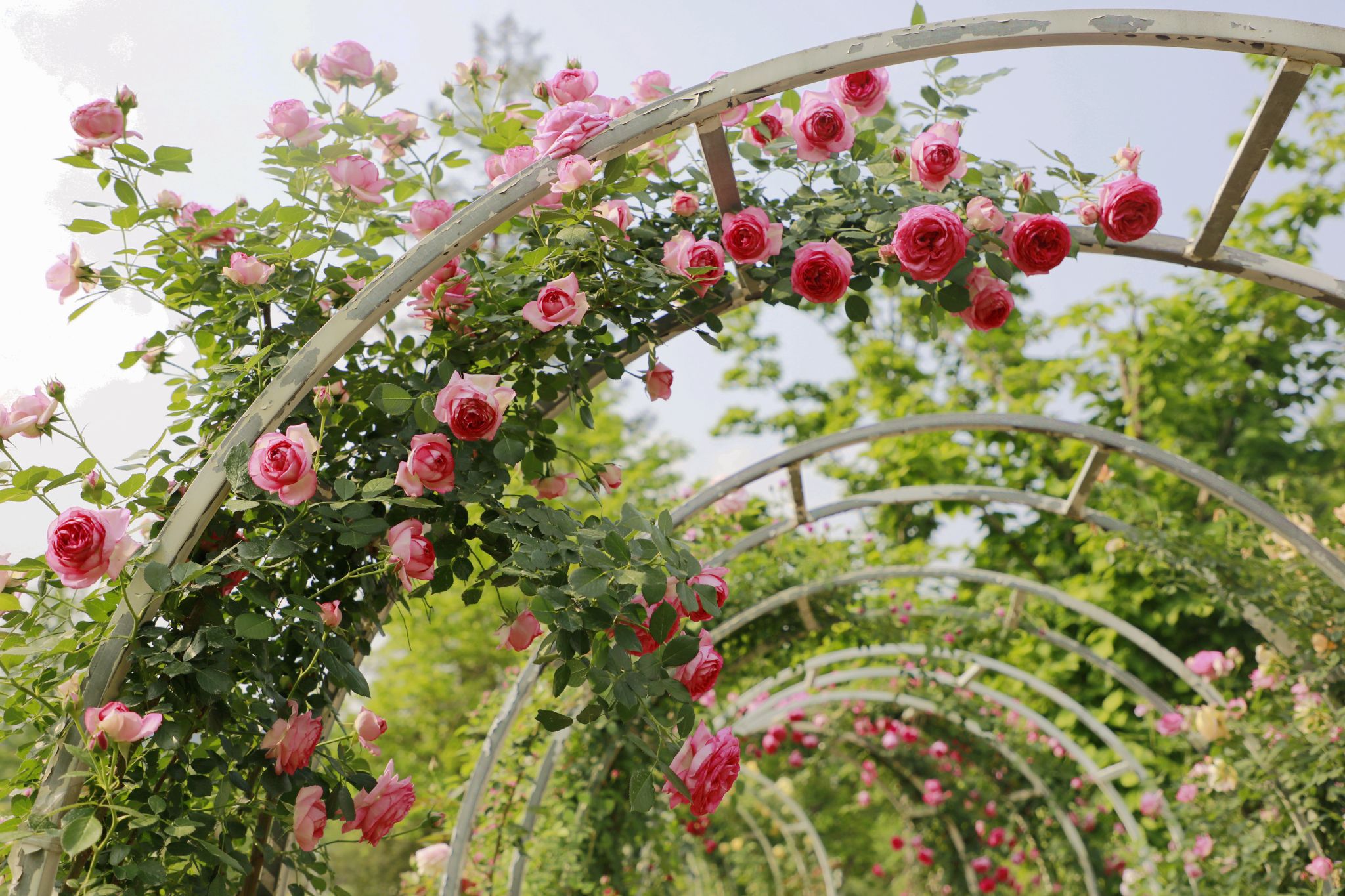 上百個品種的月季攀滿歐式廊架