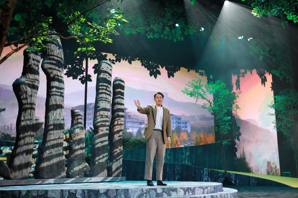 “肯干,實干,能干,這種品質(zhì)就像血液一樣流淌在我的體內(nèi),現(xiàn)在無法改變,我希望你們這一代農(nóng)林人永不言棄,發(fā)揚光大;堅守‘綠水青山就是金山銀山’,一定會大有作為!”原創(chuàng)校慶劇《大地戀歌》里,科技特派員“孫大林”的一句話,引起了全場師生的共鳴,呈現(xiàn)的是農(nóng)林人心底最純粹、最質(zhì)樸的執(zhí)念。