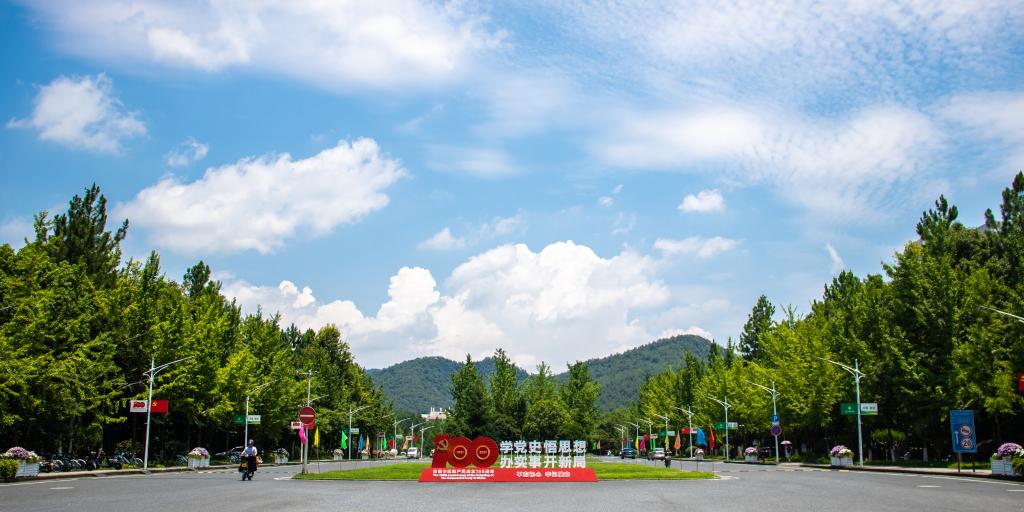 沐浴在夏日暖陽中的浙農(nóng)林,道不盡的綠樹陰濃,百花鮮妍。清澈透明的天空,時斷時續(xù)的蟬鳴,隨風搖曳的綠葉,在這充滿悸動與活力的夏日中,相得益彰,令人沉醉。賞蔥蔥綠意,感濃蔭幽靜。在橫斜交錯、深淺不一的蒼翠欲滴中,一片綠葉的朦朧睡意也清晰可見,夏天在五舟廣場上翩然起舞。