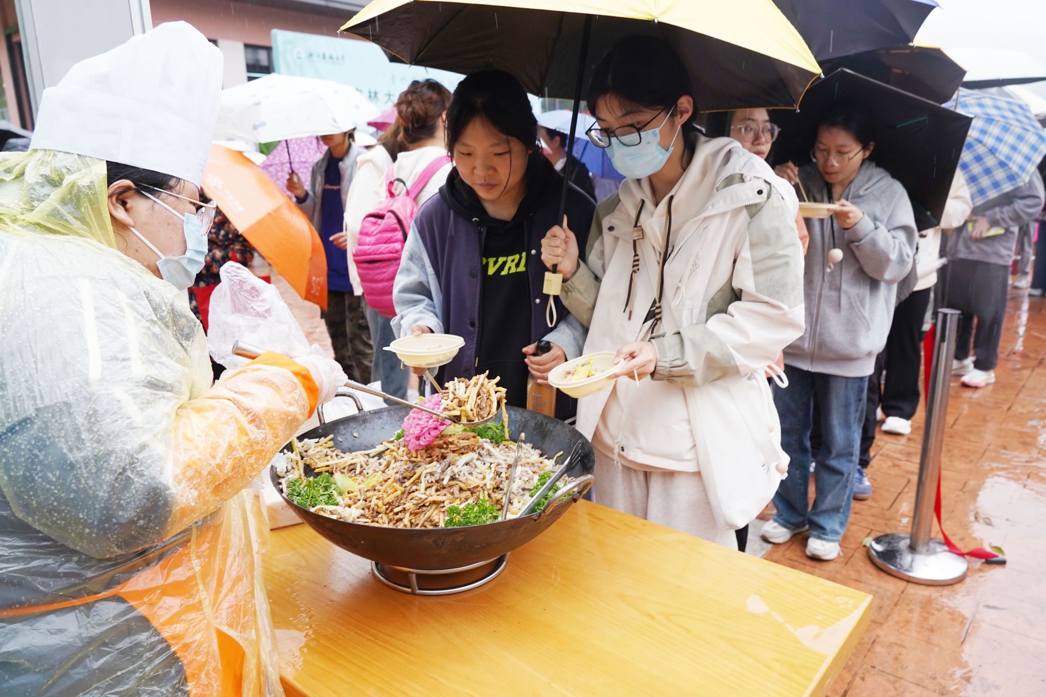 隨著一聲“開鍋!”鐵鍋的蓋子正式開啟,在場的千名師生人手一份,共同品嘗剛剛出鍋的6道竹筍菜肴,感受這來自春天的味道。隨后,浙江農林大學2025年筍宴正式啟幕:數千名師生在這里參與剝筍比賽、學燒不同口味的筍菜、品嘗各種竹筍佳肴,體驗竹子領域的最新科技成果,欣賞竹材設計的工藝品,感受竹詩詞竹音樂等竹文化。