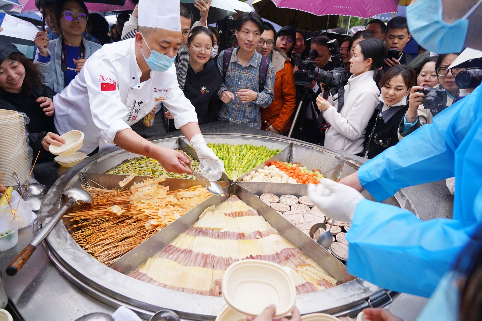4月12日,浙江農林大學在校園內舉辦筍宴,請師生們免費品嘗,同時開展剝筍競速、竹藝創作、竹科技展示等30余項筍竹主題的體驗活動。這場融合傳統飲食文化與現代竹產業創新的活動,將舌尖上的春天轉化為助力鄉村振興的生動實踐。