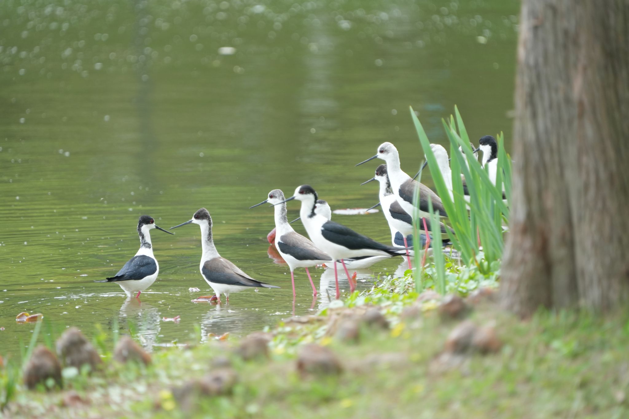 浙江農(nóng)林大學(xué)植物園辦公室教師葉喜陽回憶:“4 月 9 日清晨,我在東湖邊發(fā)現(xiàn)了這群黑翅長腳鷸,大概有近 20 只,當(dāng)時(shí)它們在淺水區(qū)覓食,偶爾在湖面飛翔。不過第二天再去,它們就已經(jīng)飛走了。”