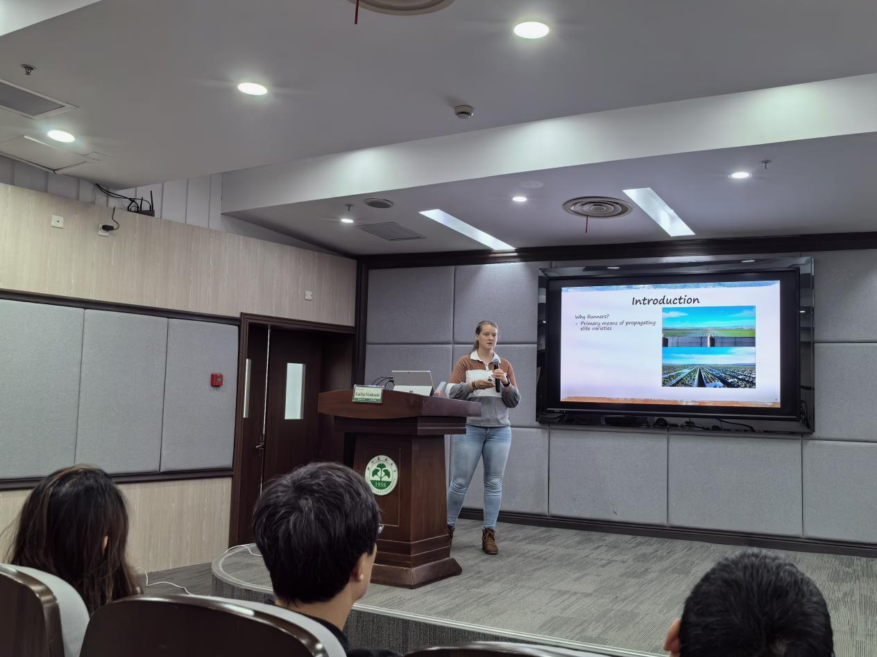 Mark Porter博士以“Gene Discovery and Genomic Prediction for improved Strawberry Flavor”為題,介紹了在草莓風味研究上的進展;Kaitlyn Vandracek博士以“Identifying the Genetic Mechanisms for Manipulation of Strawberry (Fragaria ×ananassa) Runner Production”為題,介紹了草莓匍匐莖產生的機制研究;沈鍇博士以“A Comparative Study of Precision 3D Reconstruction of Strawberry Plants for Non-Destructive Biomass Prediction”為題,介紹了通過3D影像精確測定草莓生物量的方法。