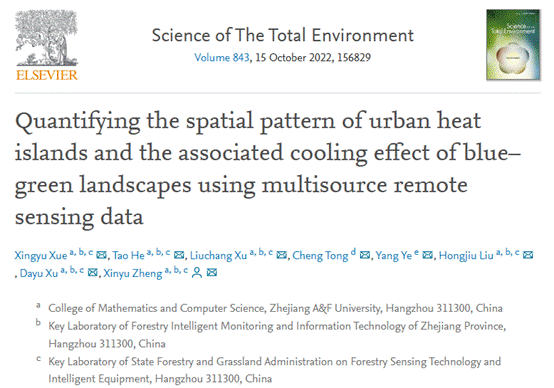 近日,數學與計算機科學學院智能科學與技術研究團隊薛星宇博士撰寫的“Quantifying the spatial pattern of urban heat islands and the associated cooling effect of blue–green landscapes using multisource remote sensing data”論文發表在國際TOP期刊《Science of The Total Environment》(IF5-yr=10.237)上。這是數計學院首次在計算機空間信息學與生態環境交叉領域發表高水平論文。