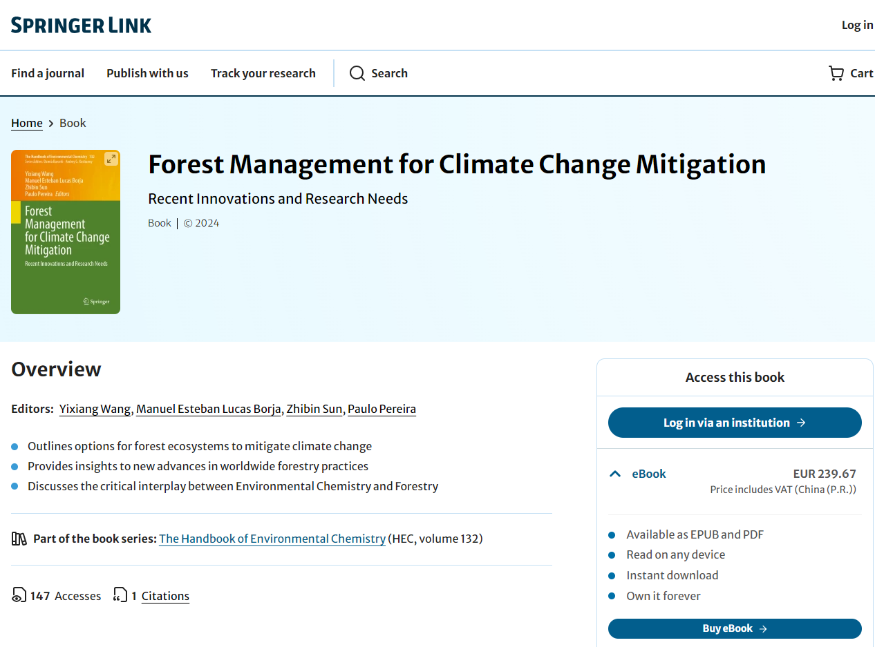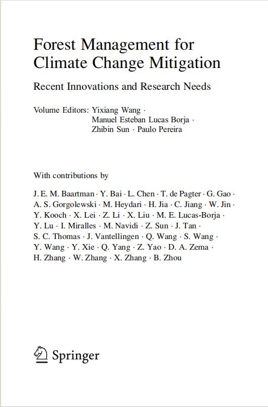 近日,浙江農(nóng)林大學環(huán)境與資源學院、碳中和學院王懿祥教授在國際著名出版社——SpringerPress(斯普林格出版社)出版英文林業(yè)專著《Forest Management for Climate Change Mitigation-Recent Innovations and Research Needs》。該書以精裝本的形式面向全球發(fā)行,并在谷歌電子書店上線和在亞馬遜上架,同步進入Springerlink平臺數(shù)據(jù)庫。