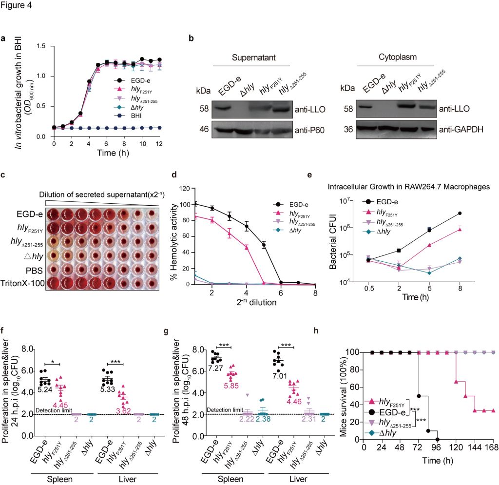 論文主要發現之二:單增李斯特菌毒力因子溶血素LLO的互作關鍵結構域和位點在細菌感染中發揮的重要作用