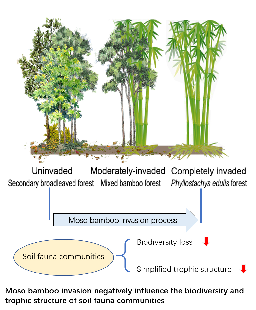 近日,我校林生院森林保護學科森林昆蟲團隊在國際知名刊物《Science of the Total Environment》(IF=6.551),在線發表了最新研究成果“The diversity of soil mesofauna declines after bamboo invasion in subtropical China”。該研究證實了亞熱帶地區毛竹入侵次生常綠闊葉林導致中型土壤動物的多樣性顯著下降,這些轉變將會負面影響凋落物初期分解等生態系統功能。