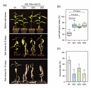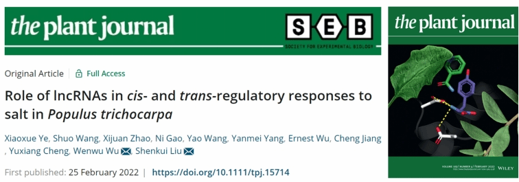 近日,國(guó)家重點(diǎn)實(shí)驗(yàn)室林木分子改良研究團(tuán)隊(duì)(柳參奎教授團(tuán)隊(duì))在《The Plant Journal》(中科院1區(qū),IF=6.417)發(fā)表題為“Role of lncRNAs in cis- and trans-regulatory responses to salt inPopulus trichocarpa”的研究論文。研究結(jié)果揭示了楊樹(shù)中l(wèi)ncRNA順式和反式調(diào)節(jié)基因表達(dá),發(fā)現(xiàn)了一個(gè)在鹽脅迫后期,劇烈上調(diào)表達(dá)的Ptlinc-NAC72,對(duì)其功能做了初步研究,該基因可能對(duì)植物在鹽脅迫后,恢復(fù)生長(zhǎng)方面,具有潛在的應(yīng)用價(jià)值。