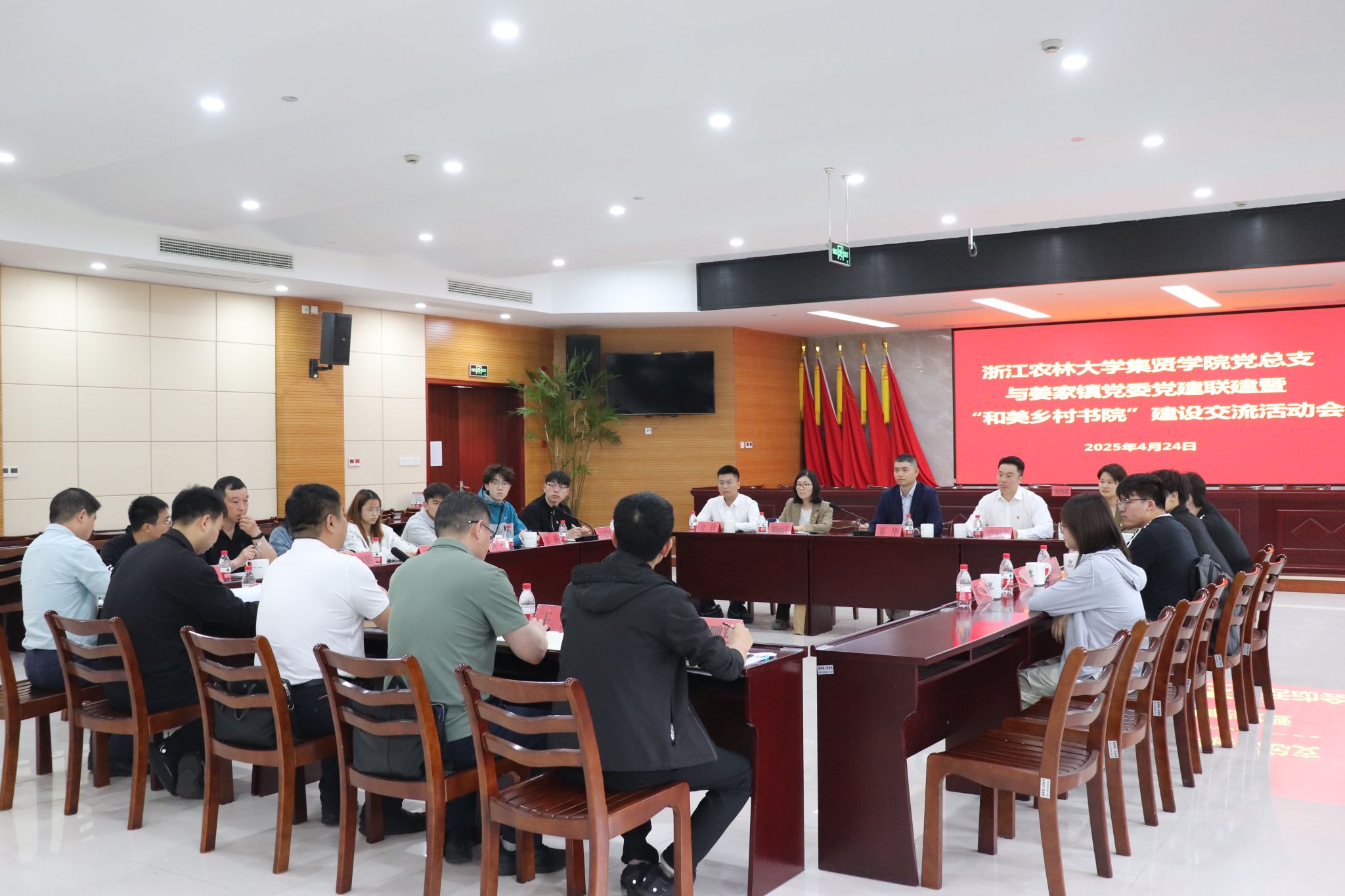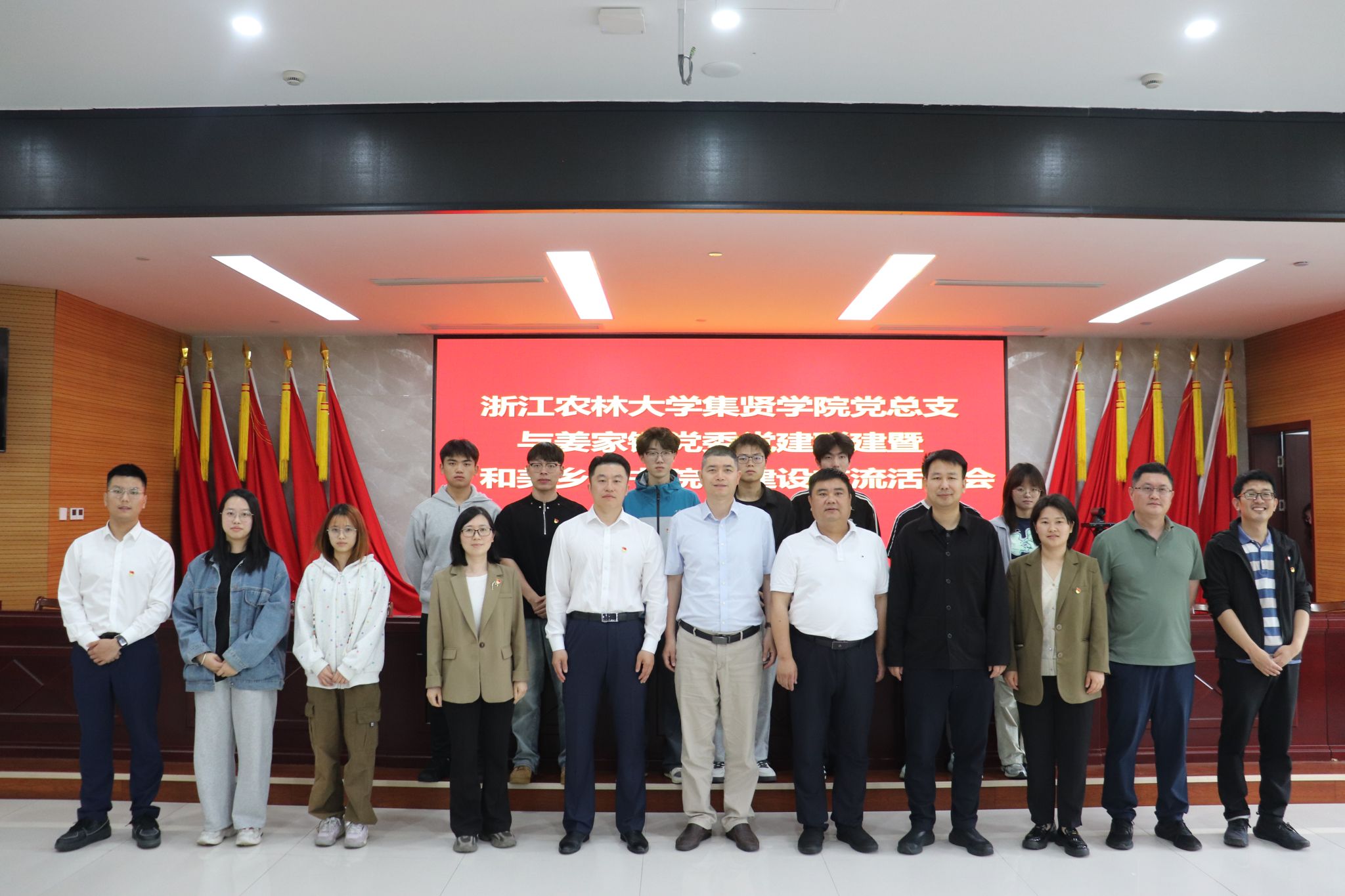 近日,浙江農林大學集賢學院負責人、黨總支負責人、學院各黨支部書記、定向農科生代表一行17人赴淳安縣姜家鎮開展黨建聯建暨“和美鄉村書院”建設交流活動。雙方圍繞如何通過黨建聯建方式,高質量建設“和美鄉村書院”主題開展深入交流,共繪校地融合發展藍圖。